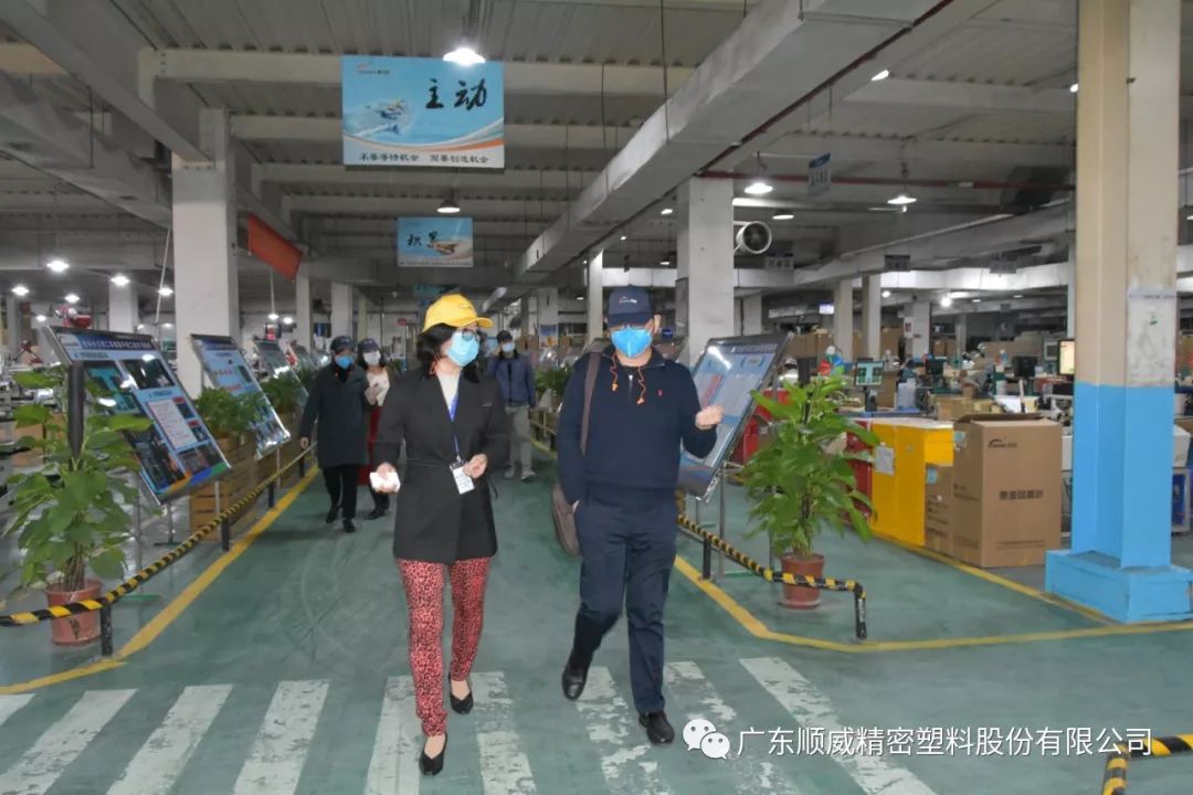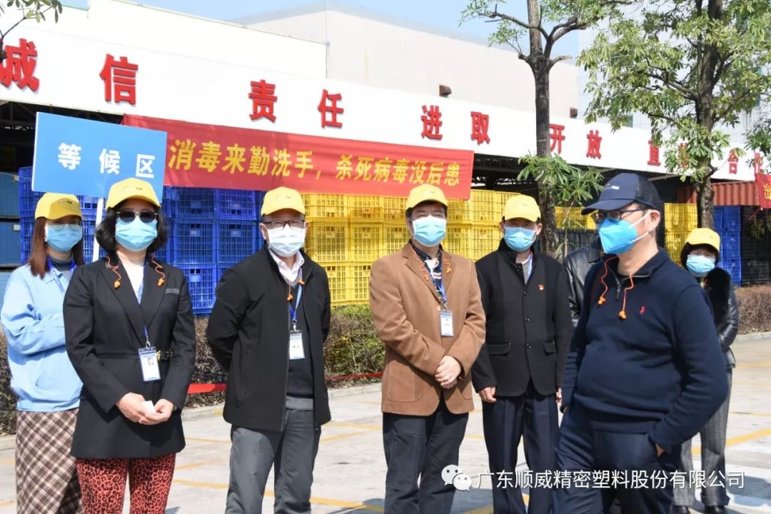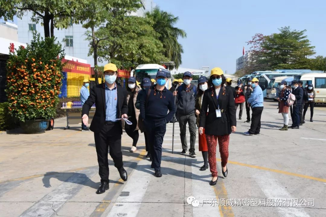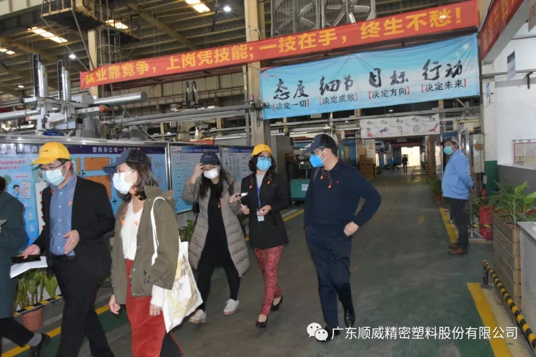 順威股份董事/總裁莫綺顏、董事/副總裁成再育、董事/副總裁/董事會秘書李笛鳴、工會主席/審計部總監(jiān)童貴云、順德塑料分公司總經(jīng)理范瑞強(qiáng)、順德模具分公司總經(jīng)理龐利彬、集團(tuán)戰(zhàn)略及商務(wù)中心/集團(tuán)人力行政中心總監(jiān)羅華、國內(nèi)營銷中心總監(jiān)助理/大客戶部高級經(jīng)理王曉菲,一眾公司高管團(tuán)隊在廠區(qū)廣場迎接中外媒體參觀團(tuán)一行的到來。